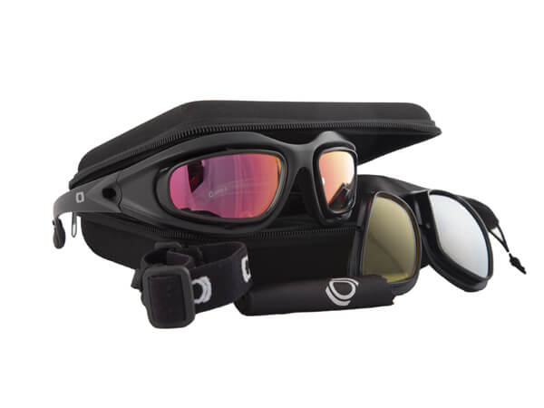 رنگ فریم این عینک آفتابی چند منظوره مشکی است و دارای فیلترهای قابل تعویض جهت استفاده در آب و هوای آفتابی، ابری، مهآلود، کم نور و برفی میباشد. با استفاده از این عینک محافظت کامل از چشمان انجام میشود و برای افراد با هرگونه فرم صورت (مربع، دایره، مثلث، مستطیل، بیضی، الماس و قلب) مناسب است.